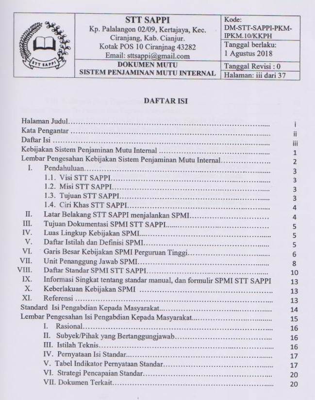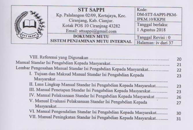 Sistem Penjaminan Mutu Internal (SPMI) Program Sarjana Teologi STT SAPPI, 10:Isi Pengabdian Kepada Masyarakat (PKM)