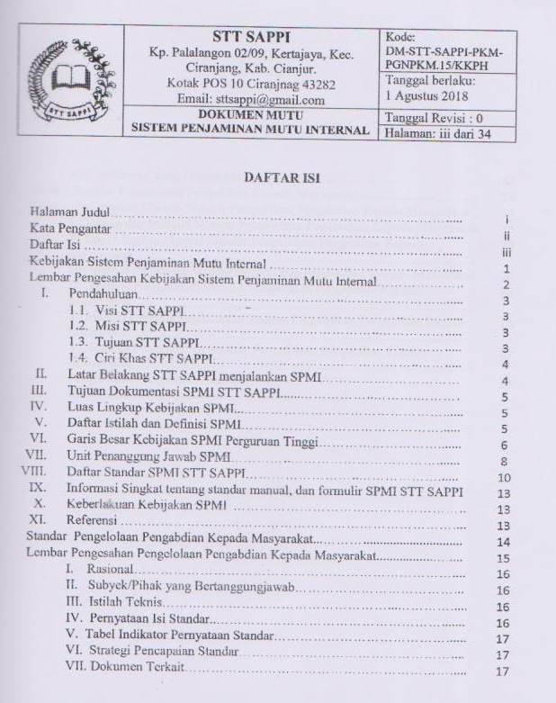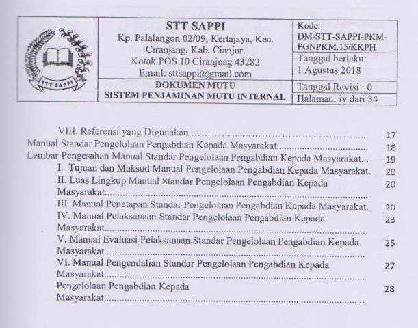 Sistem Penjaminan Mutu Internal (SPMI) Program Sarjana Teologi STT SAPPI, 15:Pengelolaan Pengabdian Kepada Masyarakat (PKM)