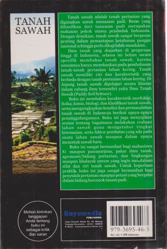 Tanah Sawah ; Karakteristik, Kondisi dan Permasalahan Tanah Sawah di Indonesia