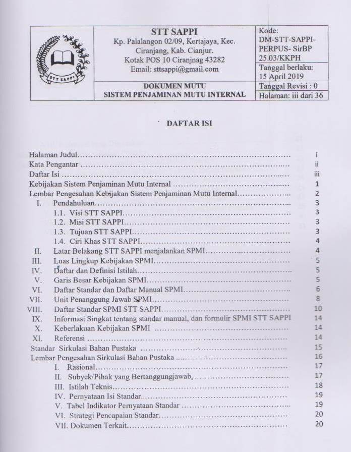 Sistem Penjaminan Mutu Internal (SPMI) Program Sarjana Teologi STT SAPPI, 25.3: Sirkulasi Bahan Pustaka