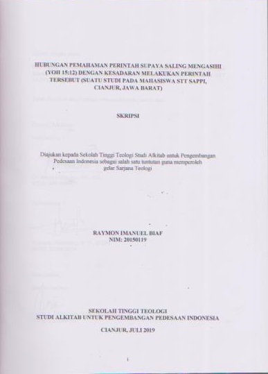 Hubungan Pemahaman Perintah supaya Saling Mengasihi ( Yoh 15:12 ) dengan Kesadaran Melakukan Perintah tersebut ( Suatu Studi pada Mahasiswa STT SAPPI Cianjur, Jawa Barat )