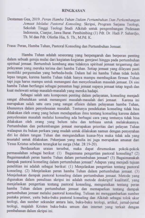 Peran Hamba Tuhan dalam Pertumbuhan dan Perkembangan Jemaat melalui Pastoral Konseling