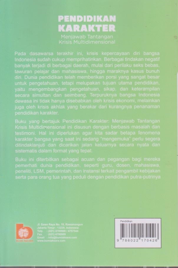 Pendidikan Karakter;Menjawab Tantangan Krisis Multidimensional