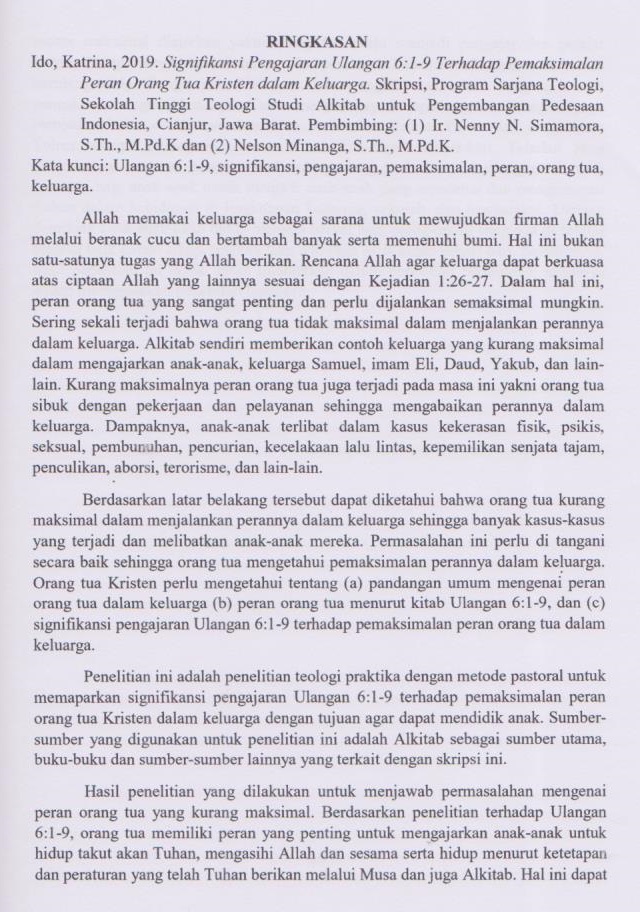 Signifikan Pengajaran Ulangan 6:1-9 Terhadap Pemaksimalan Peran Orang Tua Kristen dalam Keluarga