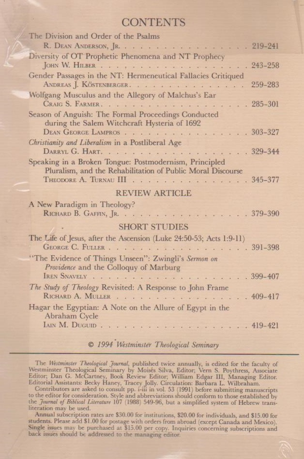 The Westminster Theological Journal Volume 56 Number 2, Fall 1994