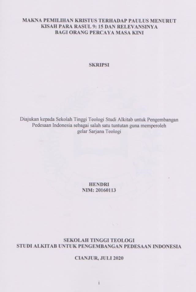 Makna Pemilihan Kristus terhadap Paulus menurut Kisah Para Rasul 9:5-15 dan Relevansinya bagi Orang Percaya Masa Kini