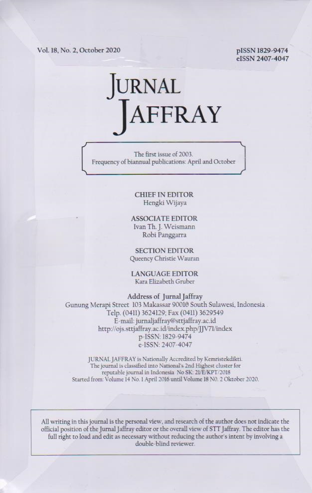 JURNAL JAFFRAY Vol. 18 No. 2, Oktober 2020 Sekolah Tinggi Theologia Jaffray