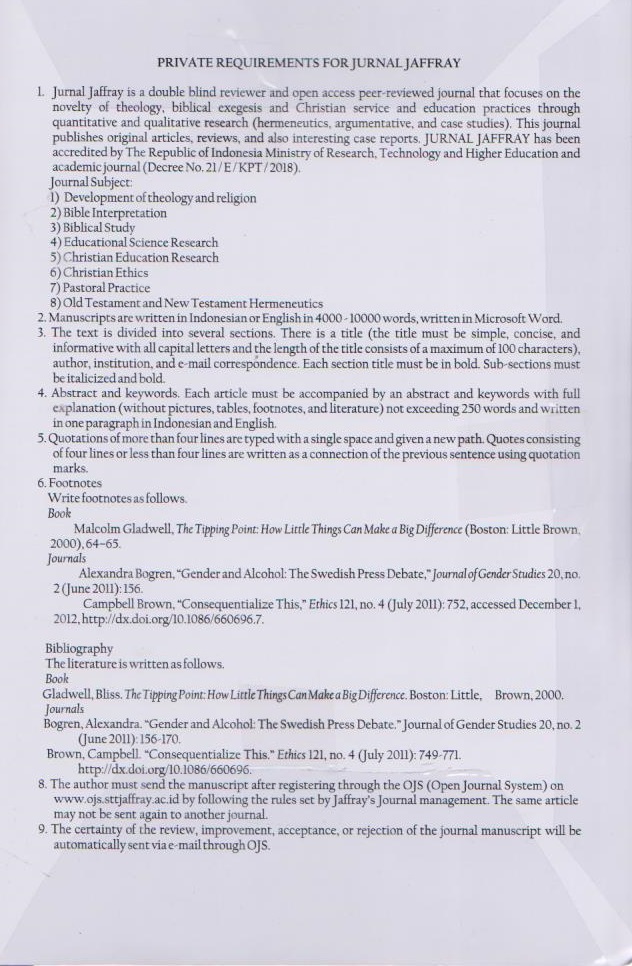 JURNAL STT JAFFRAY terbit pertama kali tahun 2003, frekuensi terbitan dua kali setahun :April dan Oktober