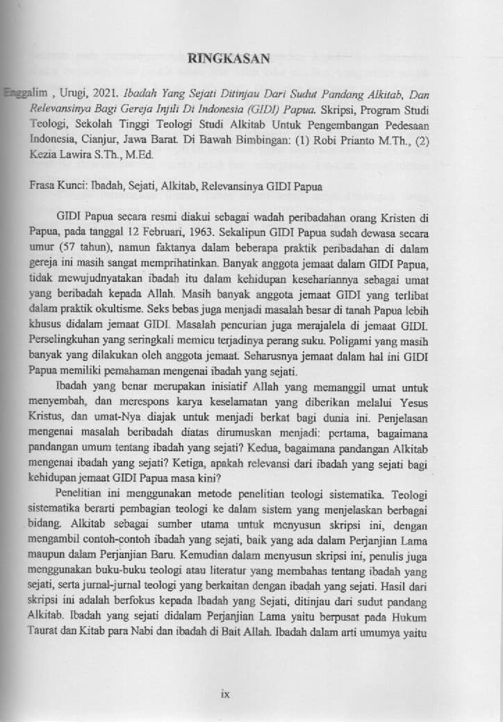 Ibadah yang Sejati Ditinjau dari Sudut Pandang Alkitabiah dan Relevansinya Bagi Gereja Injili di Indonesia (GIDI) Papua