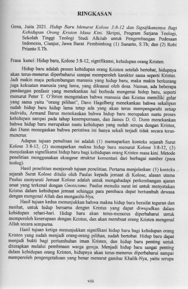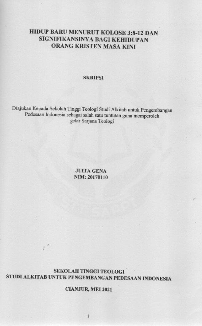 Hidup Baru Menurut Kolose 3:8-12 dan Signifikansinya Bagi Kehidupan Orang Kristen Masa Kini