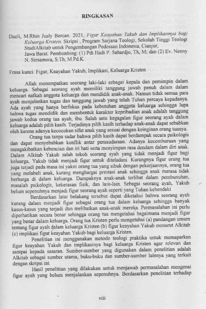 Figur Keayahan Yakub dan Implikasinya Bagi Keluarga Kristen