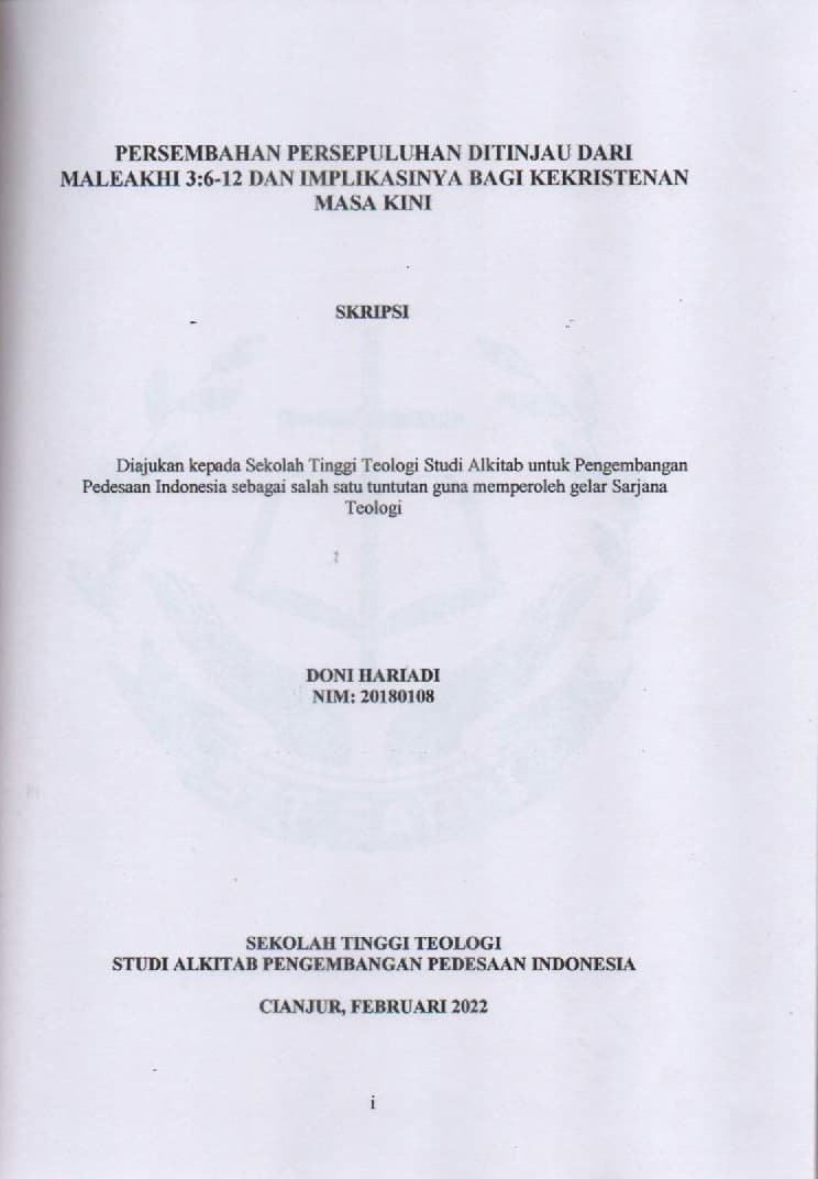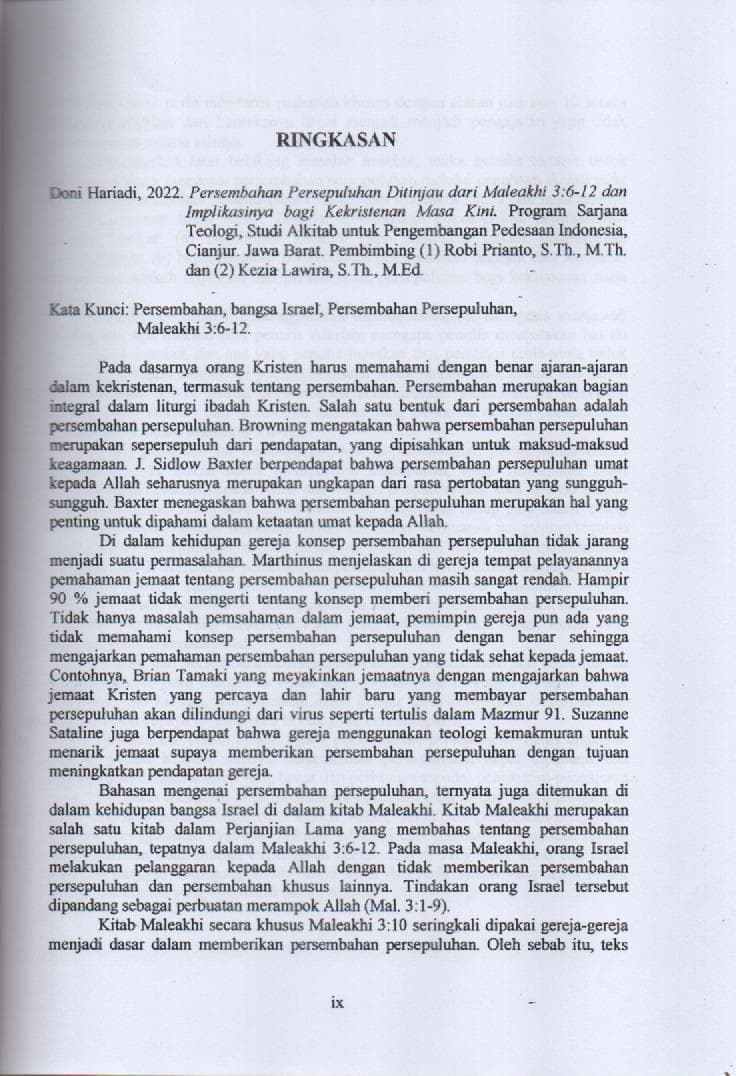 Persembahan Persepuluhan Ditinjau dari Maleakhi 3 : 6 - 12 dan Implikasinya bagi Kekristenan Masa Kini