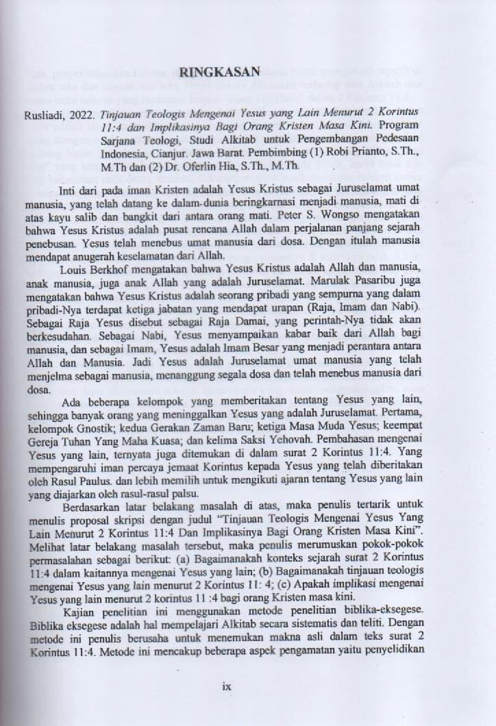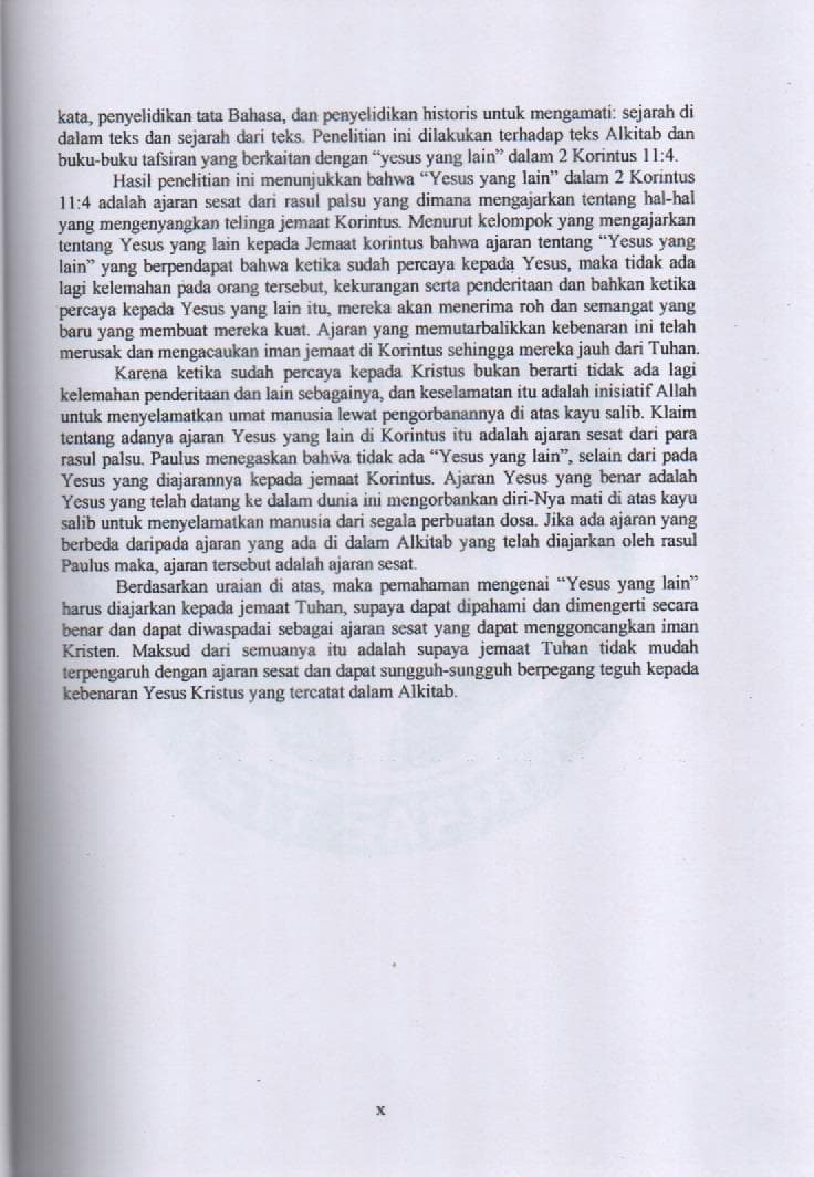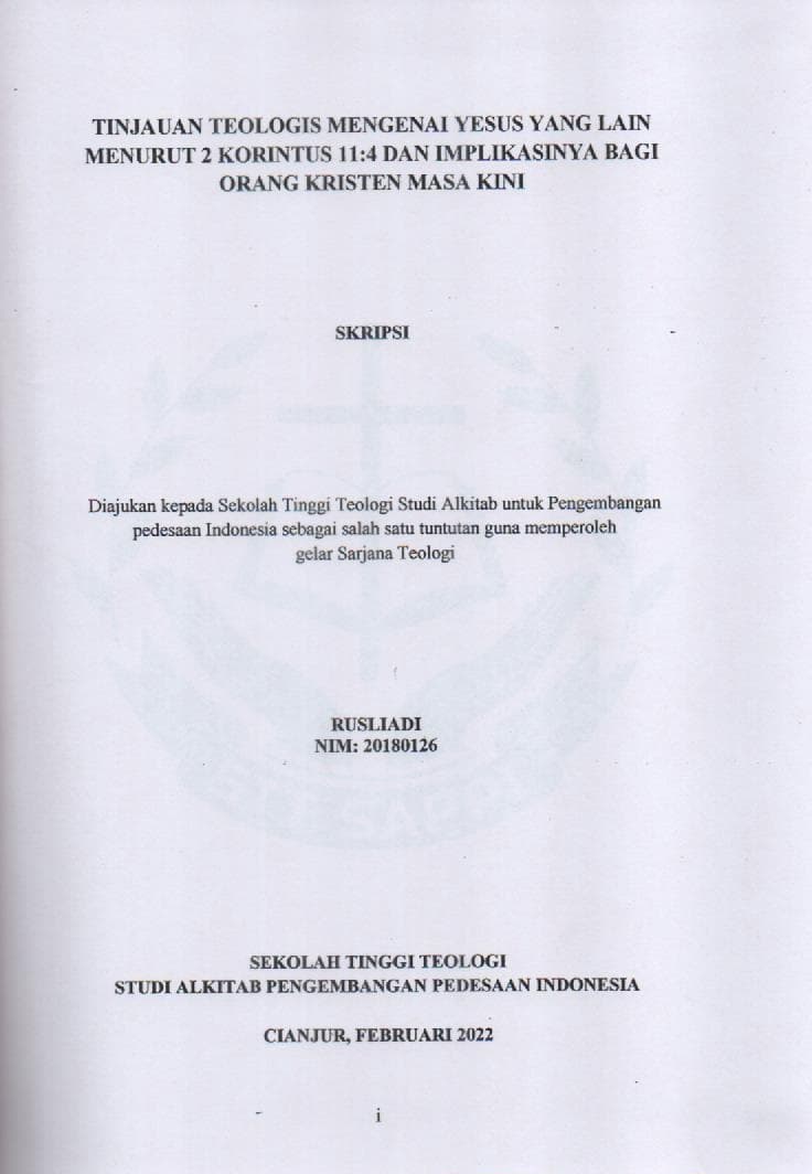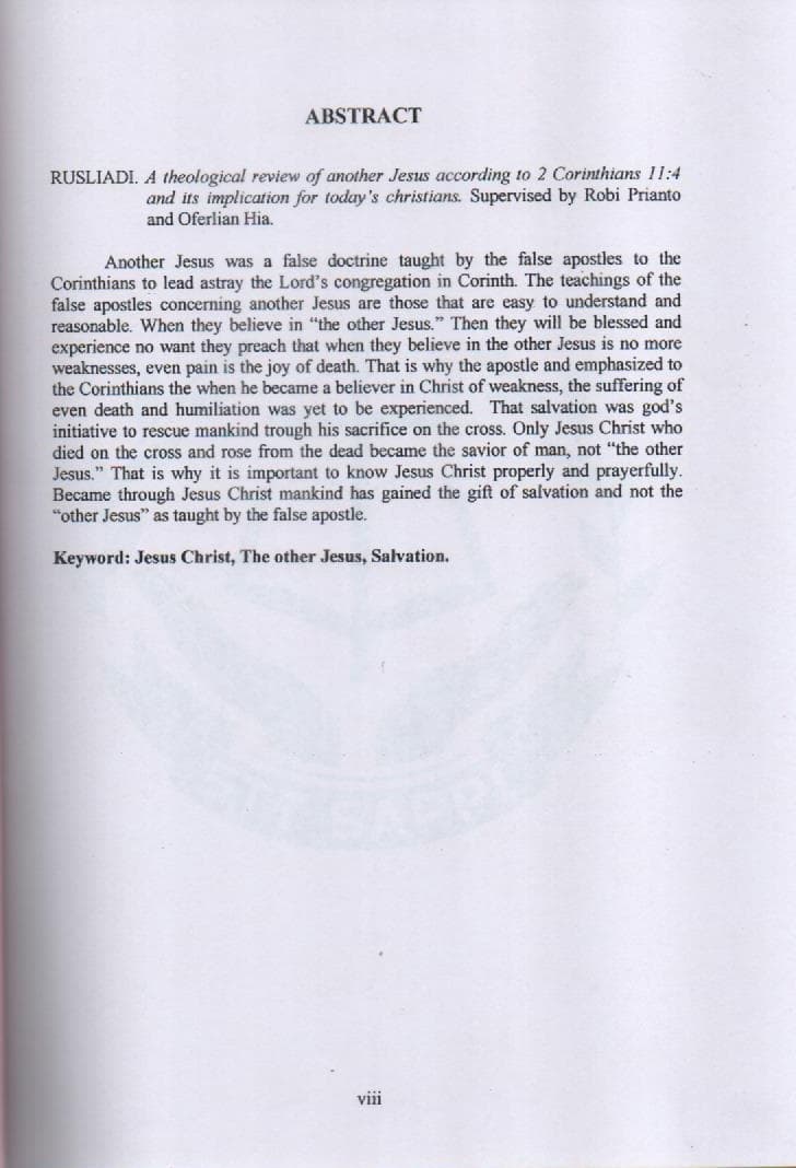Tinjauan Teologis Mengenai Yesus yang lain menurut 2 Korintus 11 : 4 dan Implikasinya bagi Orang Kristen Masa Kini