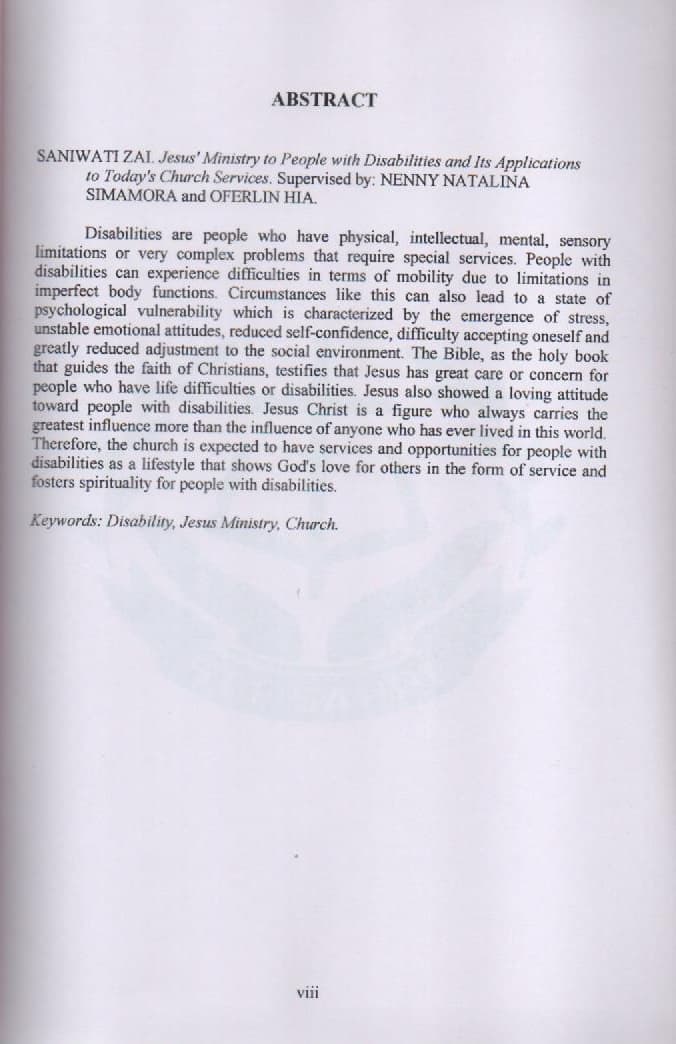Pelayanan Yesus terhadap Kaum Disabilitas dan Aplikasinya bagi Pelayanan Gereja Masa Kini