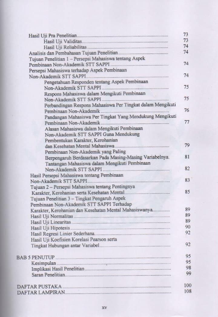 Pengaruh Aspek Pembinaan Non Akademik STT SAPPI Terhadap Upaya Meningkatkan Kualitas Karakter, Kerohanian Anda Dan Kesehatan Mental Mahasiswanya