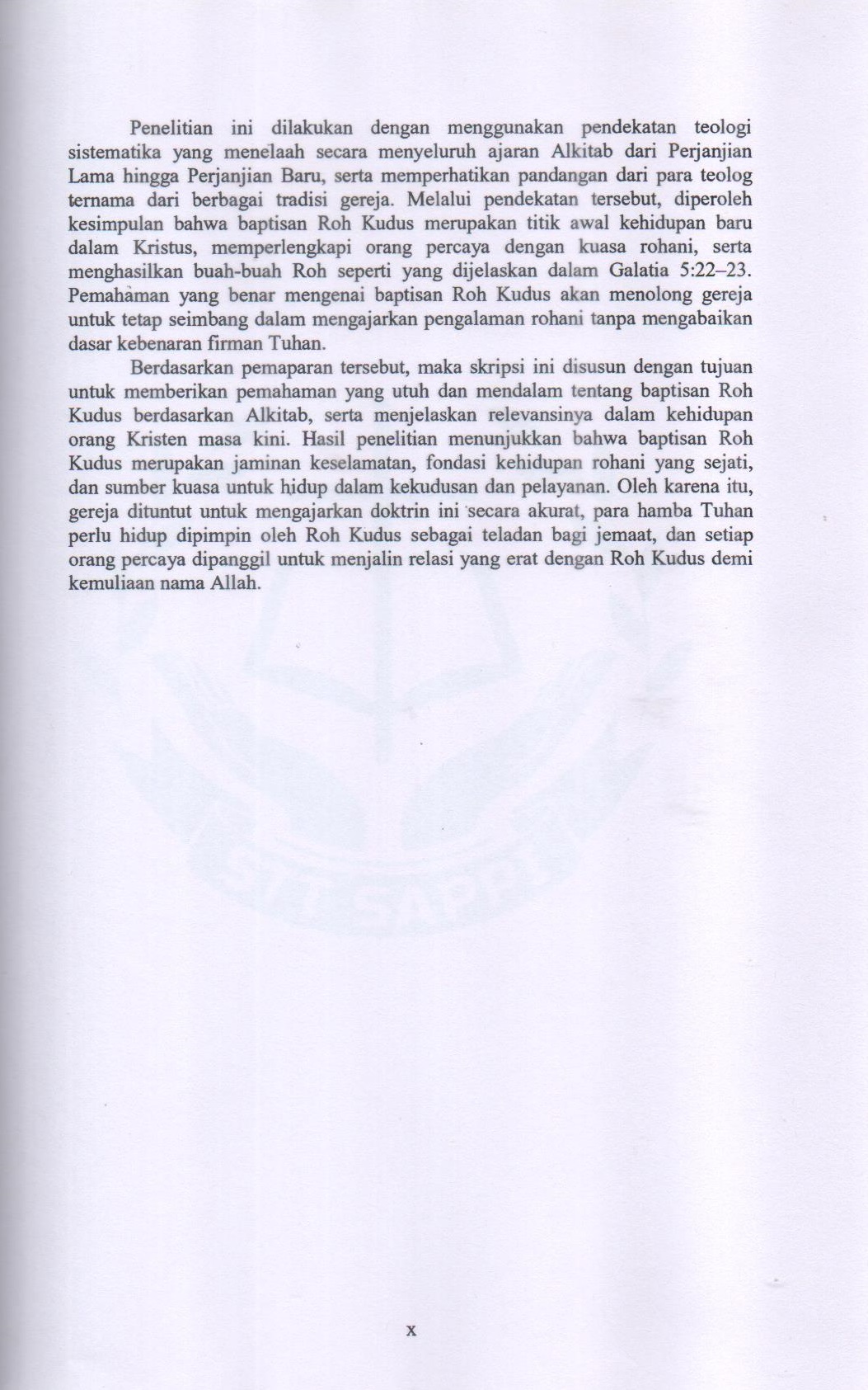 Baptisan Roh Kudus Dalam Prefektif Alkitab dan Relevansinya Dalam Kehidupan Orang Kristen