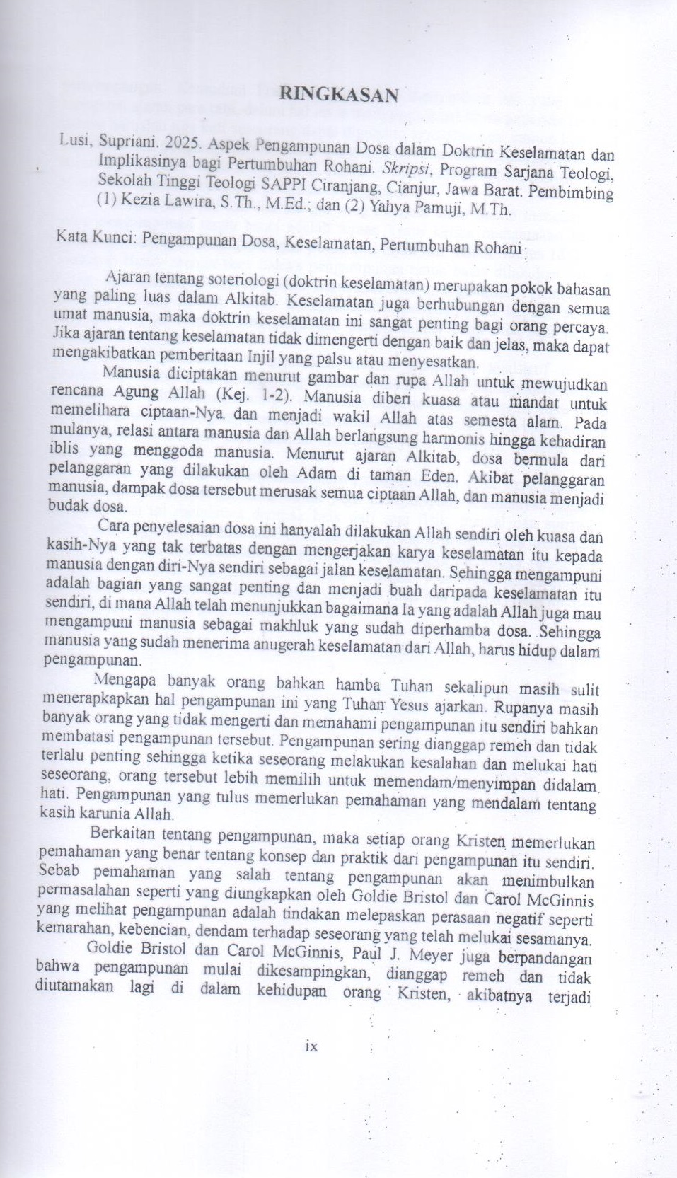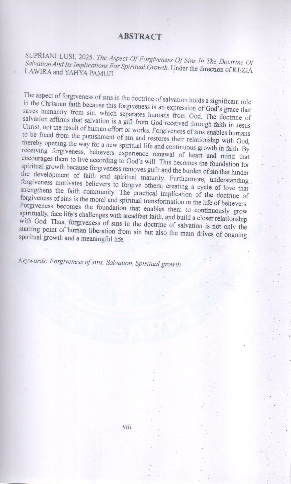 Aspek Pengampunan Dosa Dalam Doktrin Keslamatan dan Implikasinya Bagi Pertumbuhan Rohani