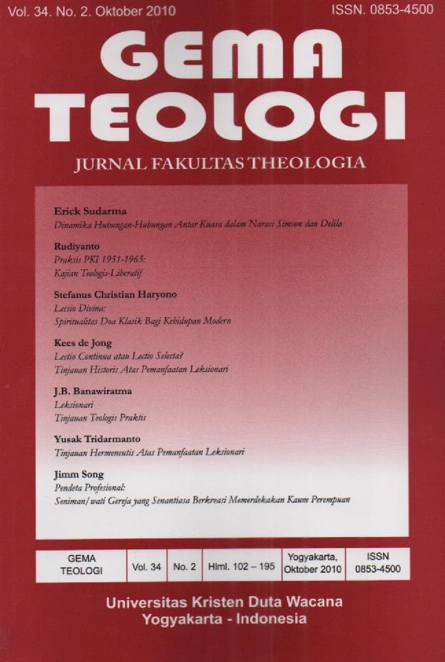 Gema Teologi vol. 34 no. 2 Oktober 2010 Jurnal Fakultas Teologi UKDW Yogyakarta Indonesia