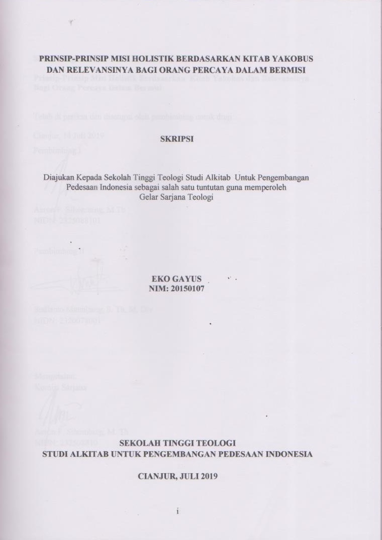 Prinsip-prinsip Misi Holistik Berdasarkan Kitab Yakobus dan Relevansinya bagi Orang Percaya dalam Bermisi
