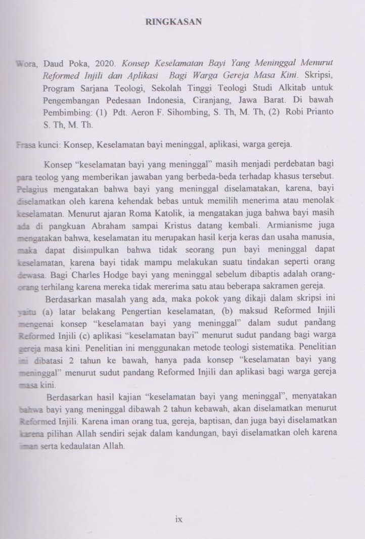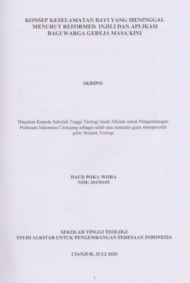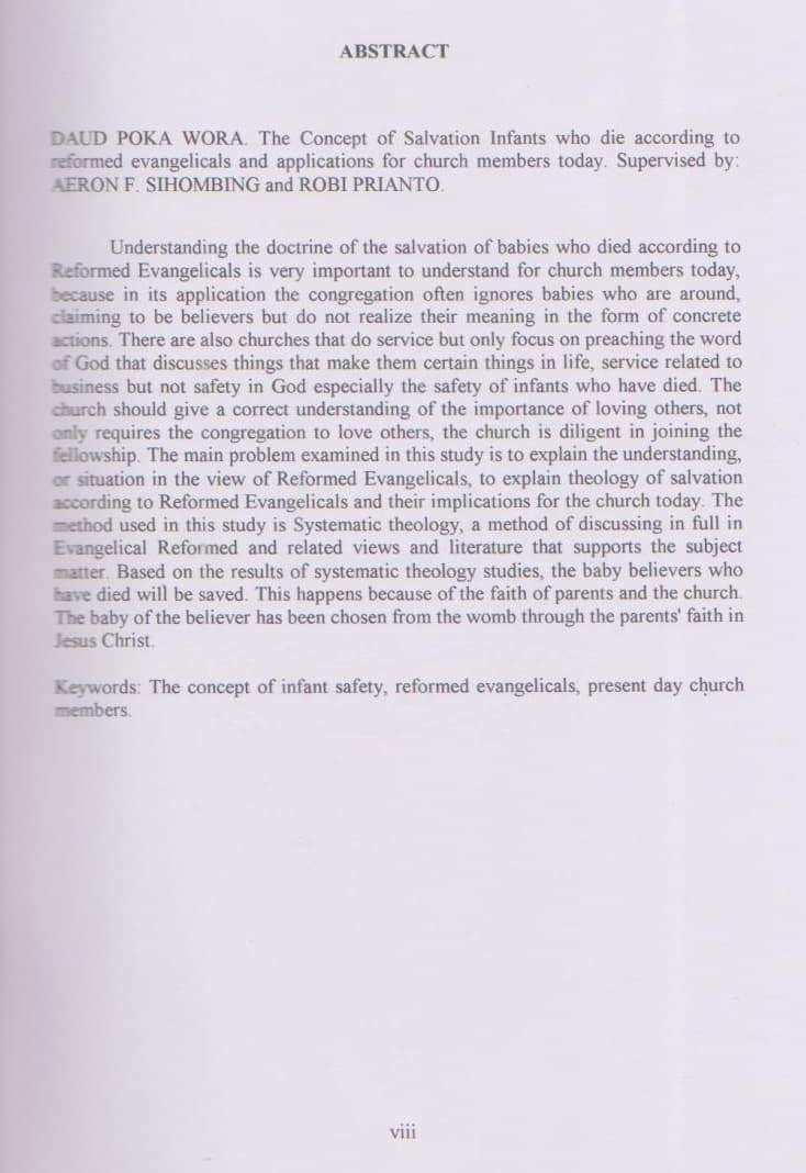 Konsep Keselamatan Bayi Yang Meninggal Menurut Reformed Injili dan Aplikasinya Bagi Warga Gereja Masa Kini