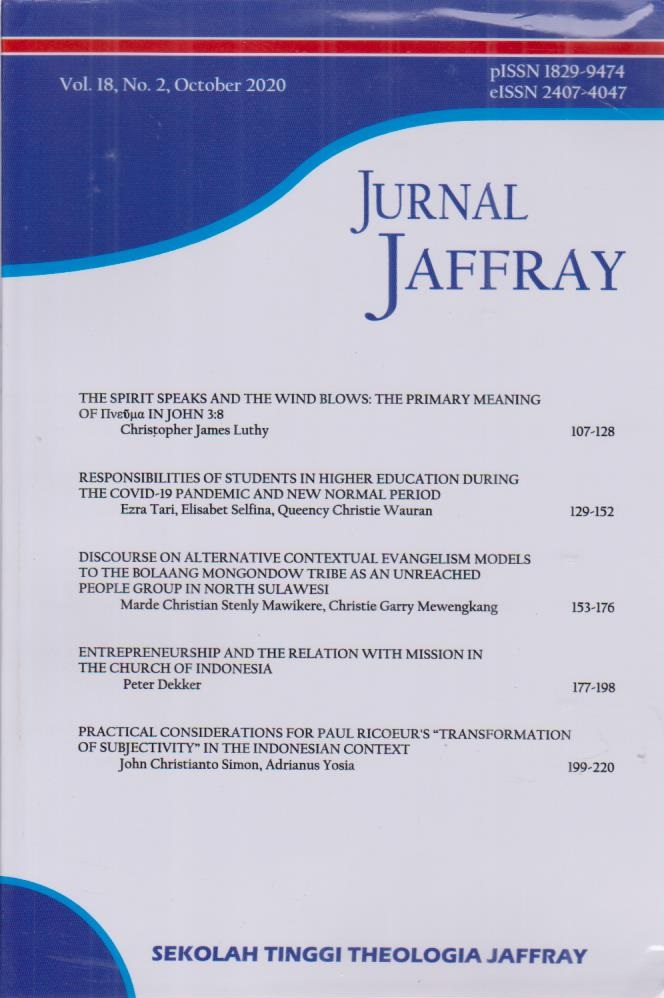 JURNAL JAFFRAY Vol. 18 No. 2, Oktober 2020 Sekolah Tinggi Theologia Jaffray