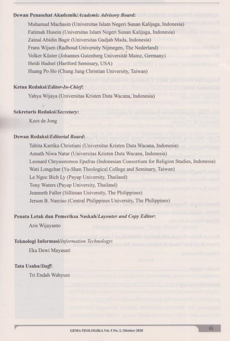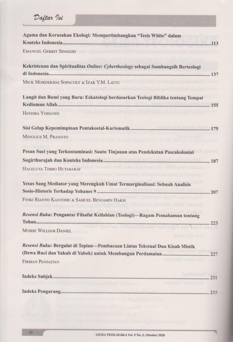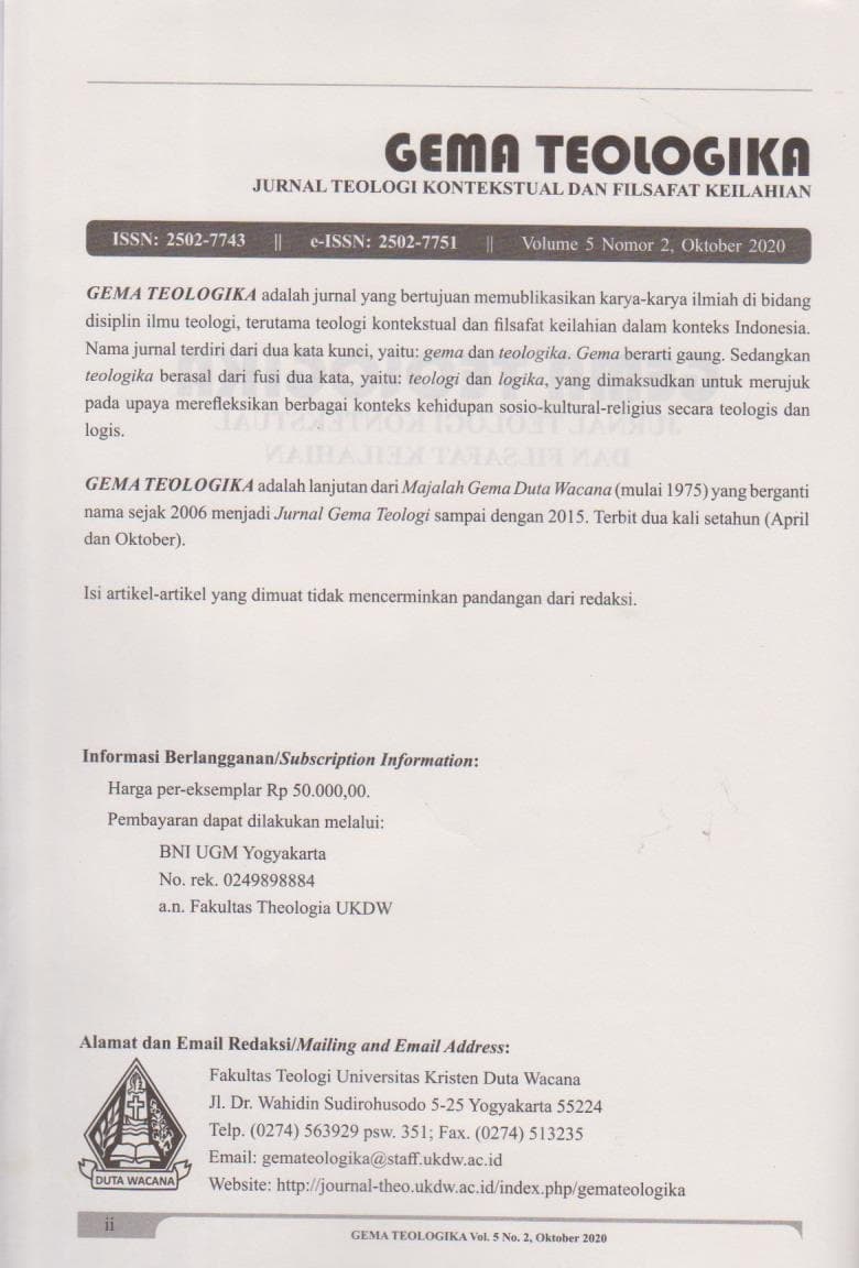 GEMA TEOLOGIKA Volume 5 Nomor 2, Oktober 2020 Jurnal Teologi Kontekstual & Filsafat Keilahian