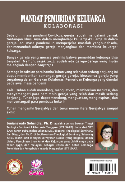 Buku “Mandat Pemuridan Keluarga – Kolaborasi” merupakan kumpulan kesaksian dari gereja-gereja yang mengikuti gerakan Ulangan 6 yang diselenggarakan oleh Yayasan Eunike sejak tahun 2013. Gereja-gereja ini adalah gereja yang memiliki pemimpin/aktivis yang terbeban untuk merintis pemuridan keluarga di dalam gereja. Di masa pandemi dan paska pandemi, gereja sangat membutuhkan dorongan untuk menguatkan keluarga-keluarga jemaat. Untuk itu, tulisan perwakilan gereja yang sudah dikumpulkan dan disusun dengan sangat baik oleh tim Yayasan Eunike di tahun 2019, perlu segera diterbitkan sehingga bisa memberkati lebih banyak gereja.