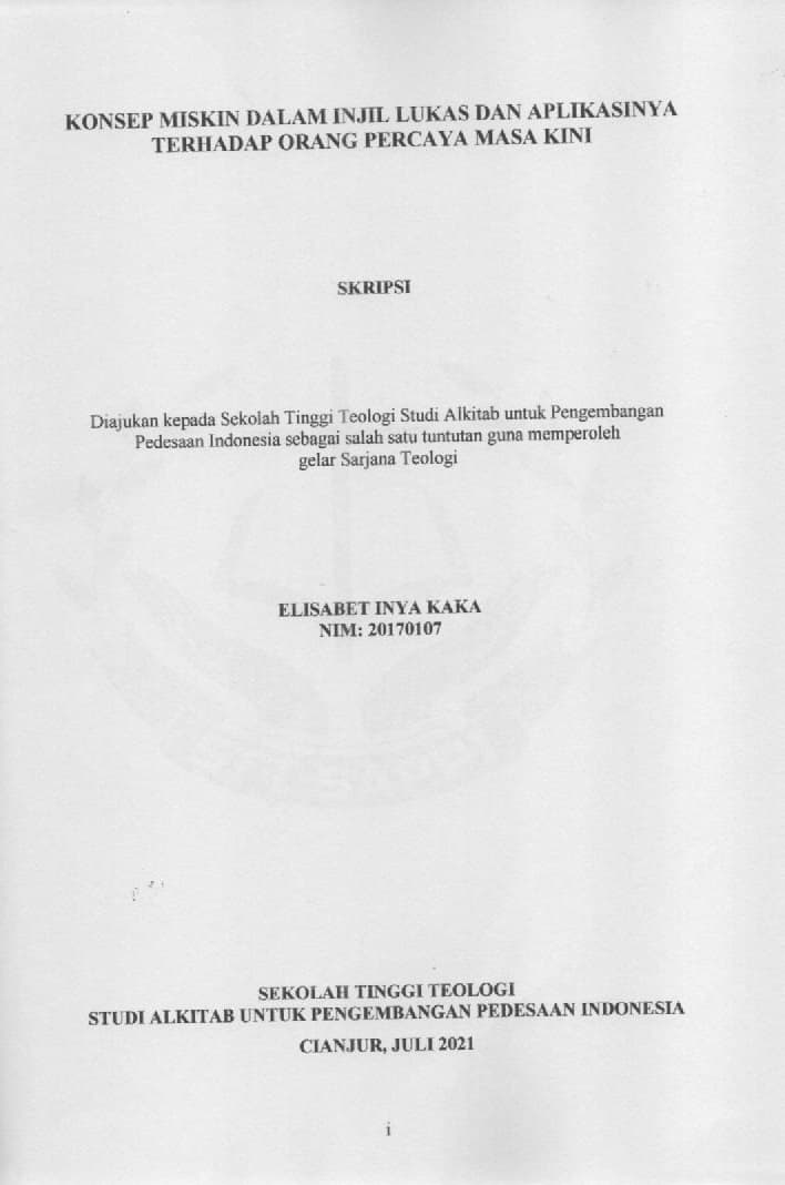 Konsep Miskin Dalam Injil Lukas dan Aplikasinya Terhadap Orang Percaya Masa Kini