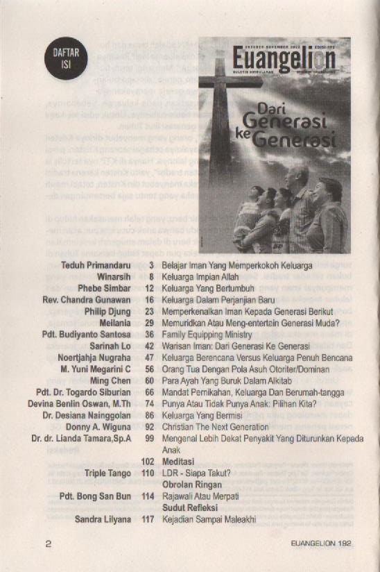 BULETIN EUANGELION EDISI 192 OKTOBER - NOVEMBER 2022 DARI GENERASI KE GENERASI