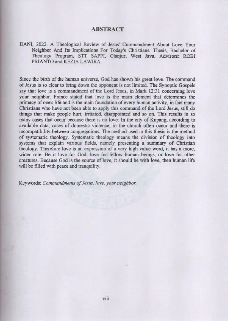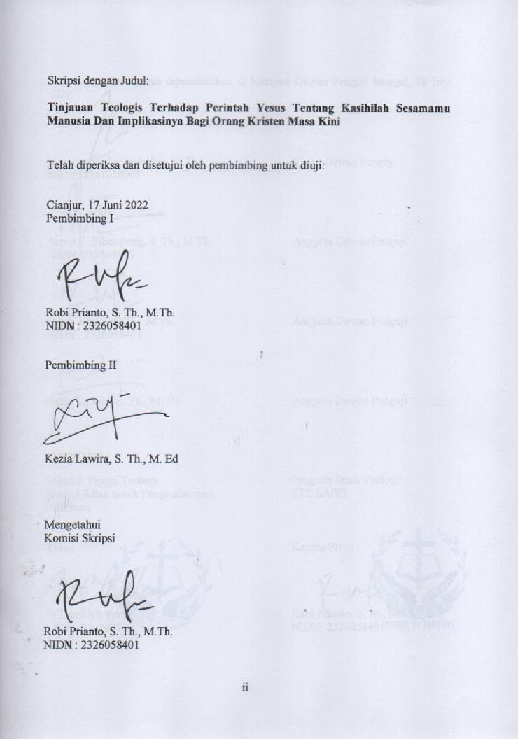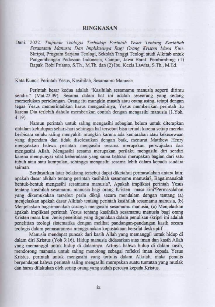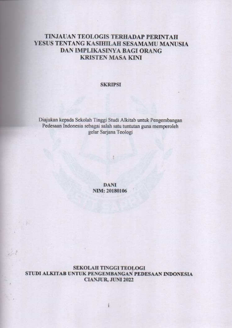 Tinjauan Teologis terhadap Perintah Yesus tentang Kasihilah Sesamamu Manusia dan Implikasinya bagi Orang Kristen Masa Kini