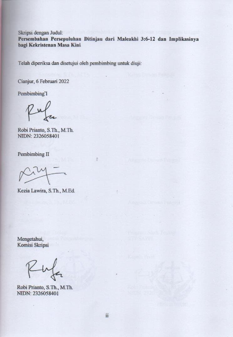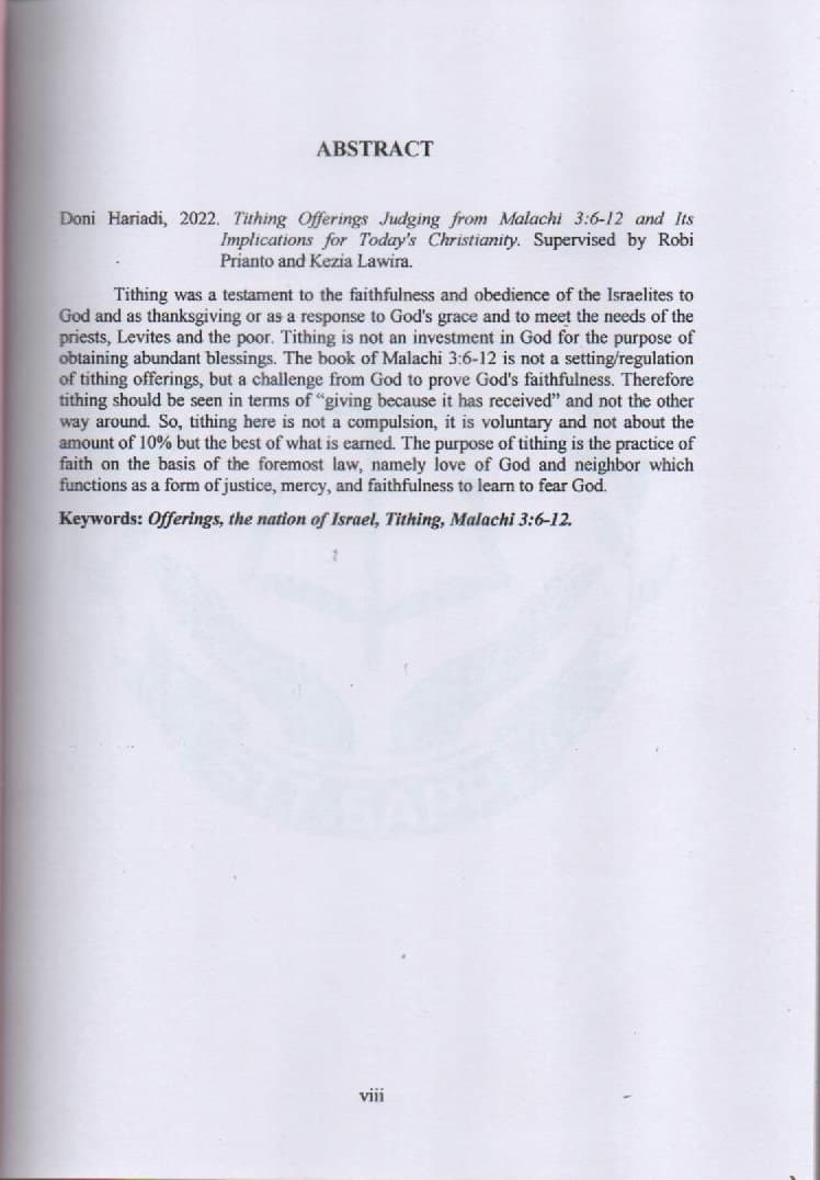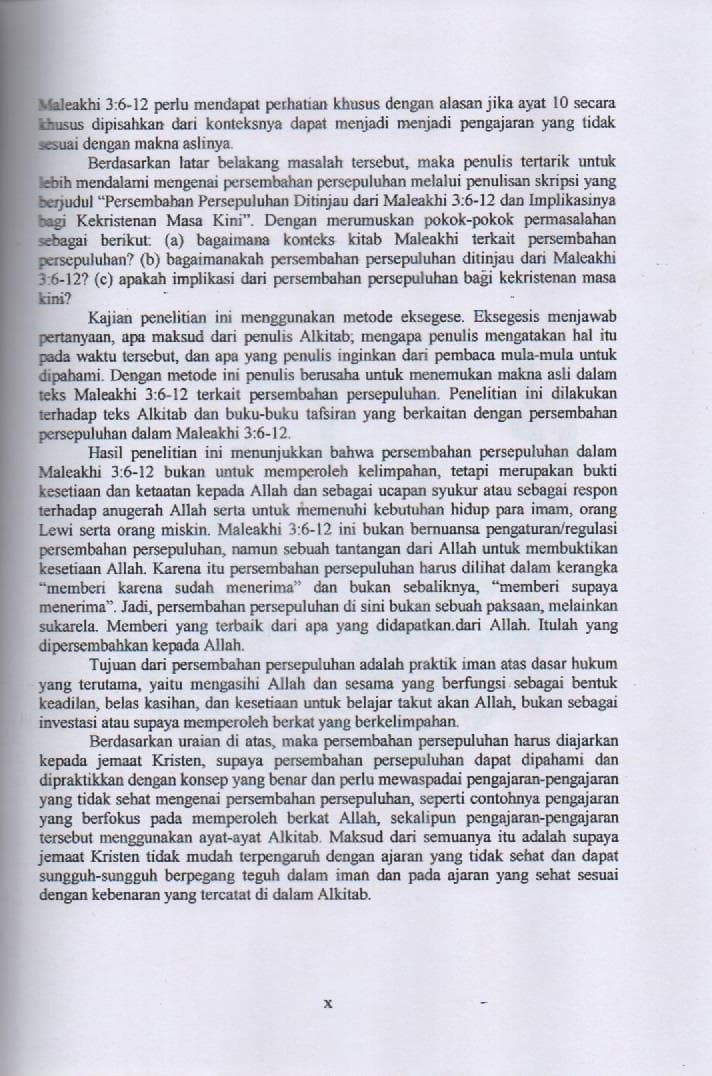 Persembahan Persepuluhan Ditinjau dari Maleakhi 3 : 6 - 12 dan Implikasinya bagi Kekristenan Masa Kini