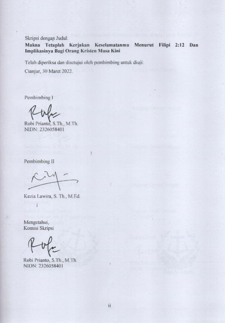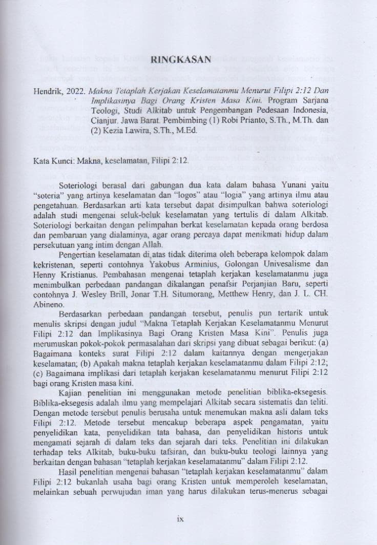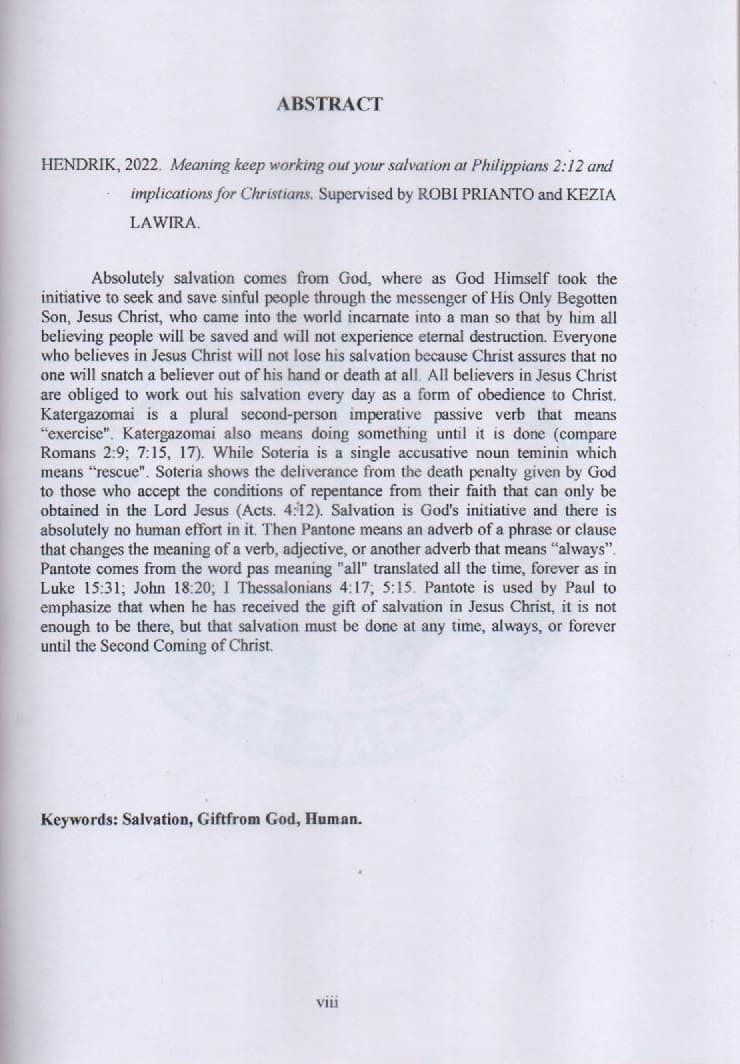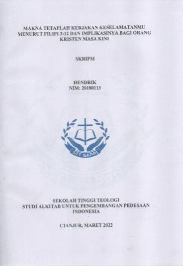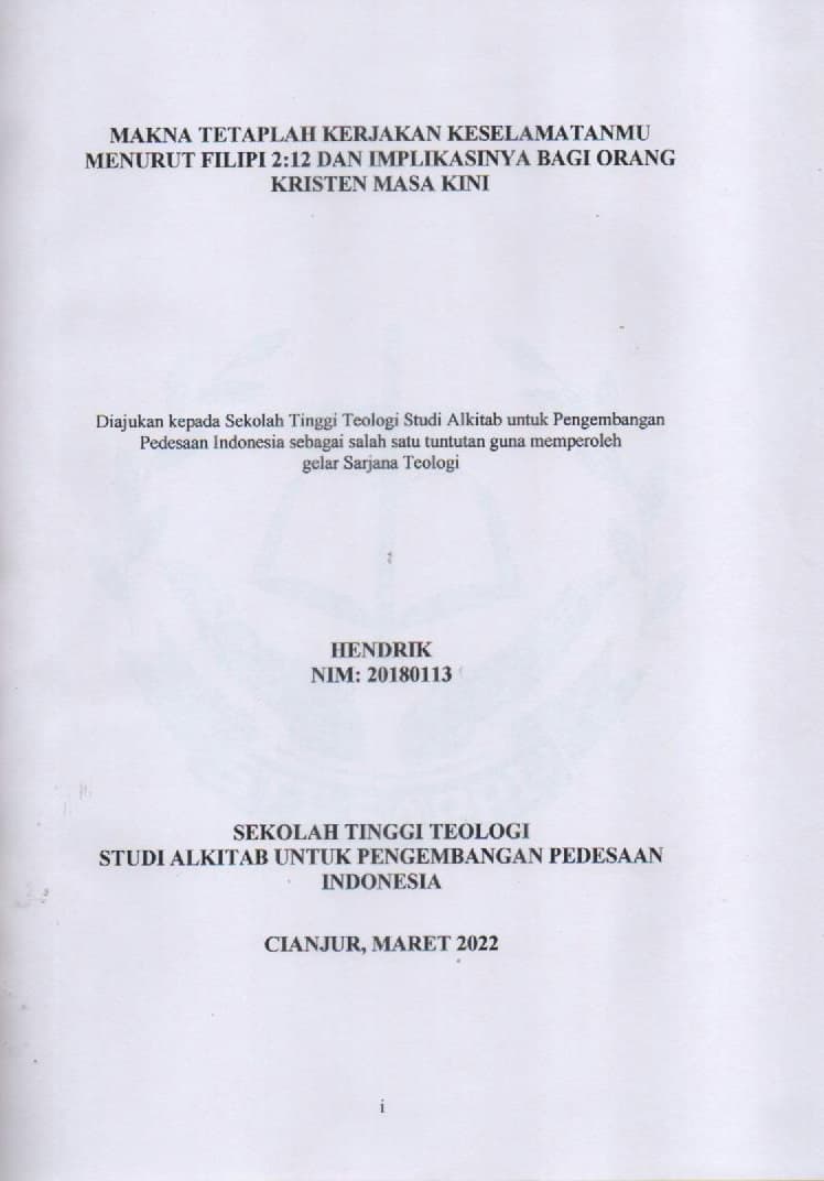 Makna Tetaplah Kerjakan Keselamatanmu menurut Filipi 2 : 12 dan Implikasinya bagi Orang Kristen Masa Kini