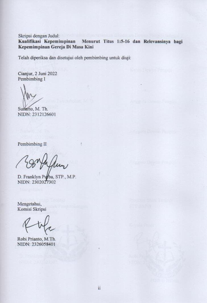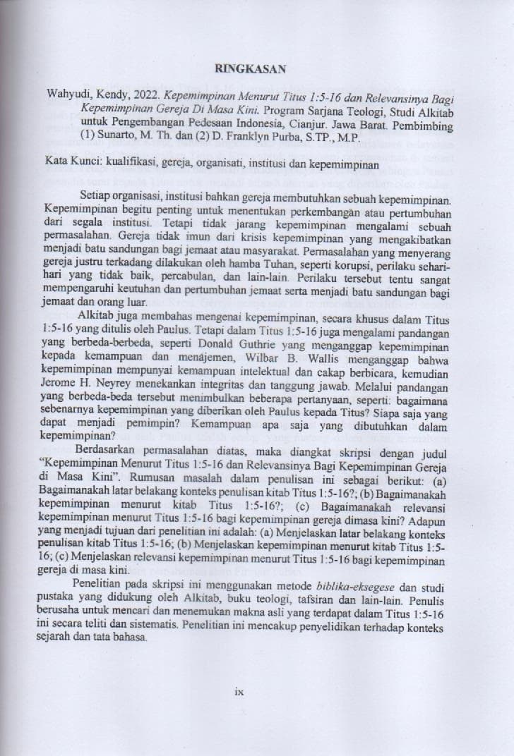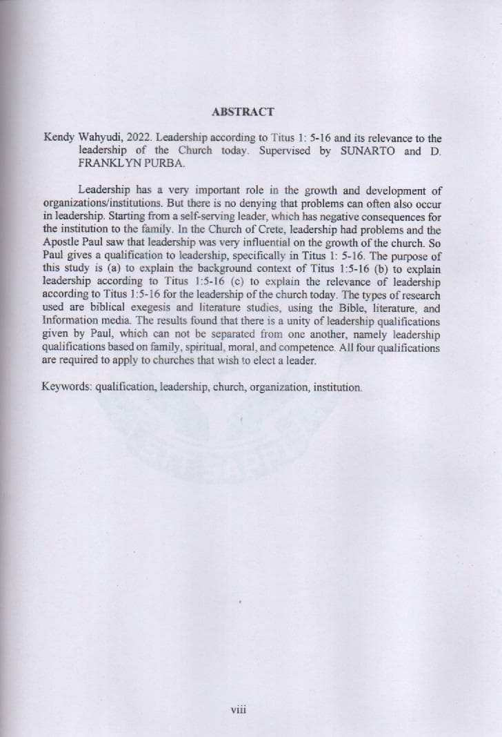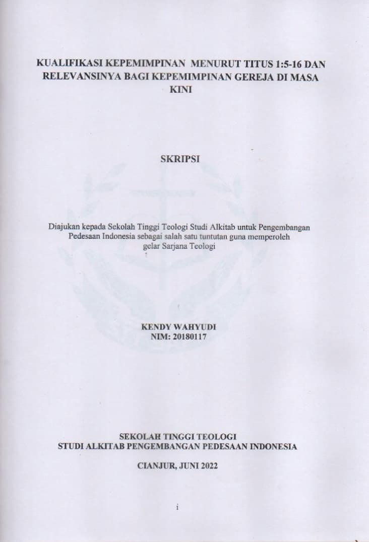 Kualifikasi Kepemimpinan Menurut Titus 1 : 5 - 16 dan Relevansinya bagi Kepemimpinan Gereja di Masa Kini