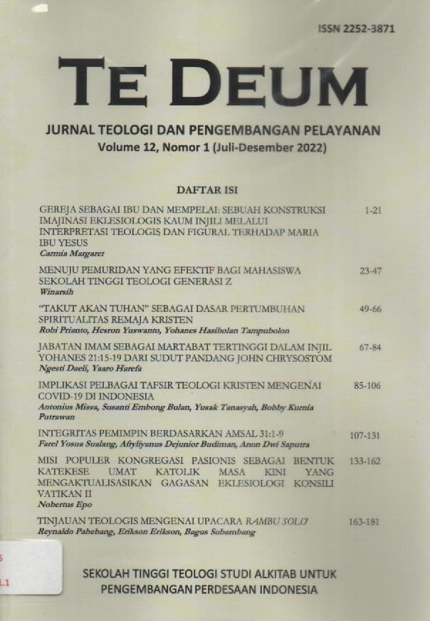 TE DEUM Volume 12 No. 1 { Juli - Desember 2022 } Jurnal Teologi dan Pengembangan Pelayanan STT SAPPI Ciranjang, Cianjur