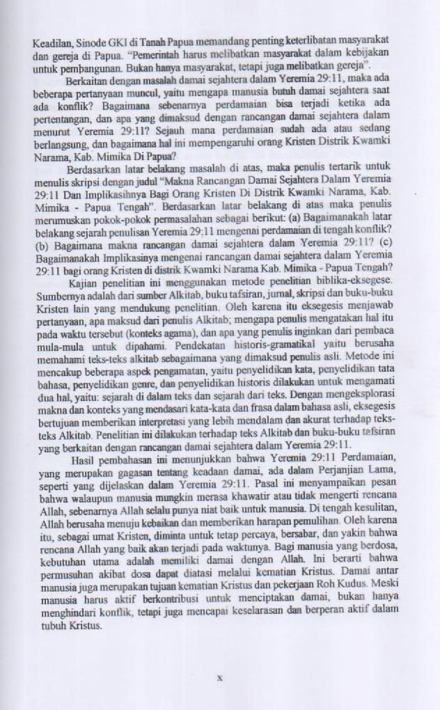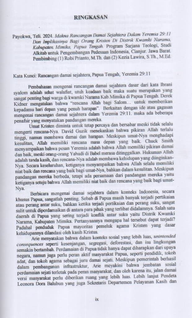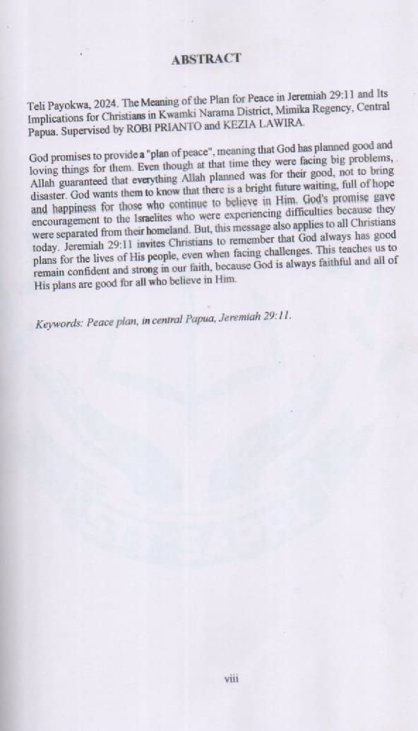 Makna Rancangan Damai Sejahtera dalam Yeriemia 29:11 dan Implikasinya Bagi Orang Kristen di Distrik Kwamki Narama Kabupaten Mimika Papua Tengah