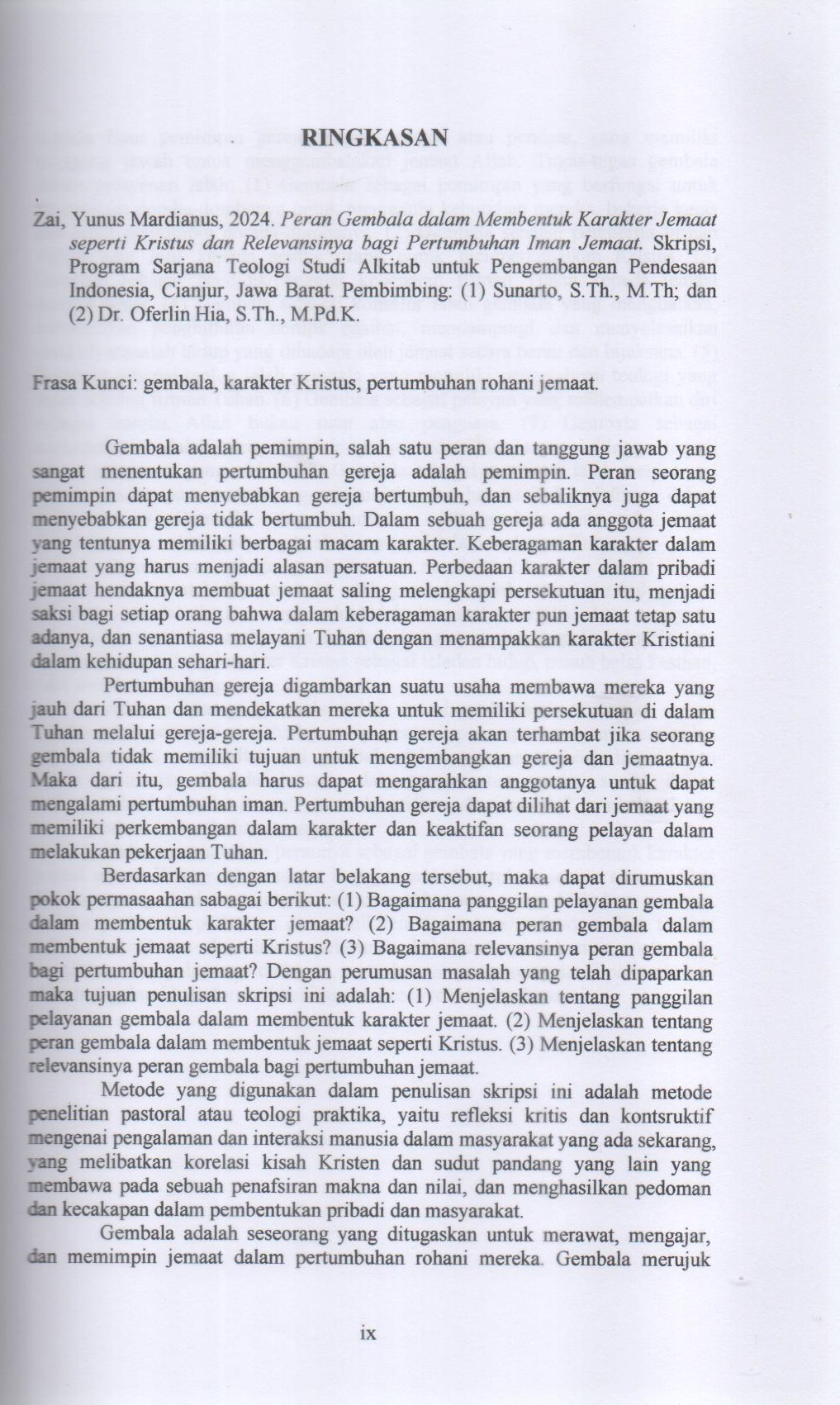 Peran Gembala dalam Membentuk Karakter Jemaat Seperti Kristus dan Relevansinya bagi Pertumbuhan Rohani Jemaat