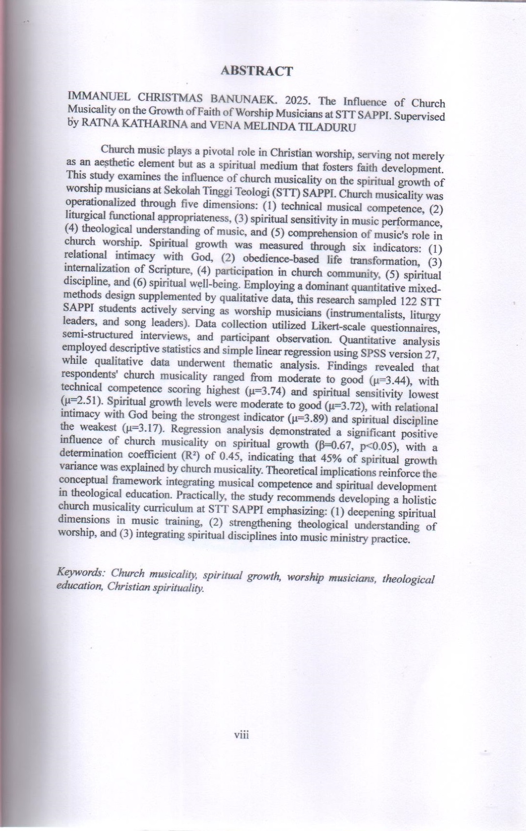 Pengaruh Musikalitas Gerejawi Terhadap Pertumbuhan Iman Pemusik Ibadah di STT SAPPI