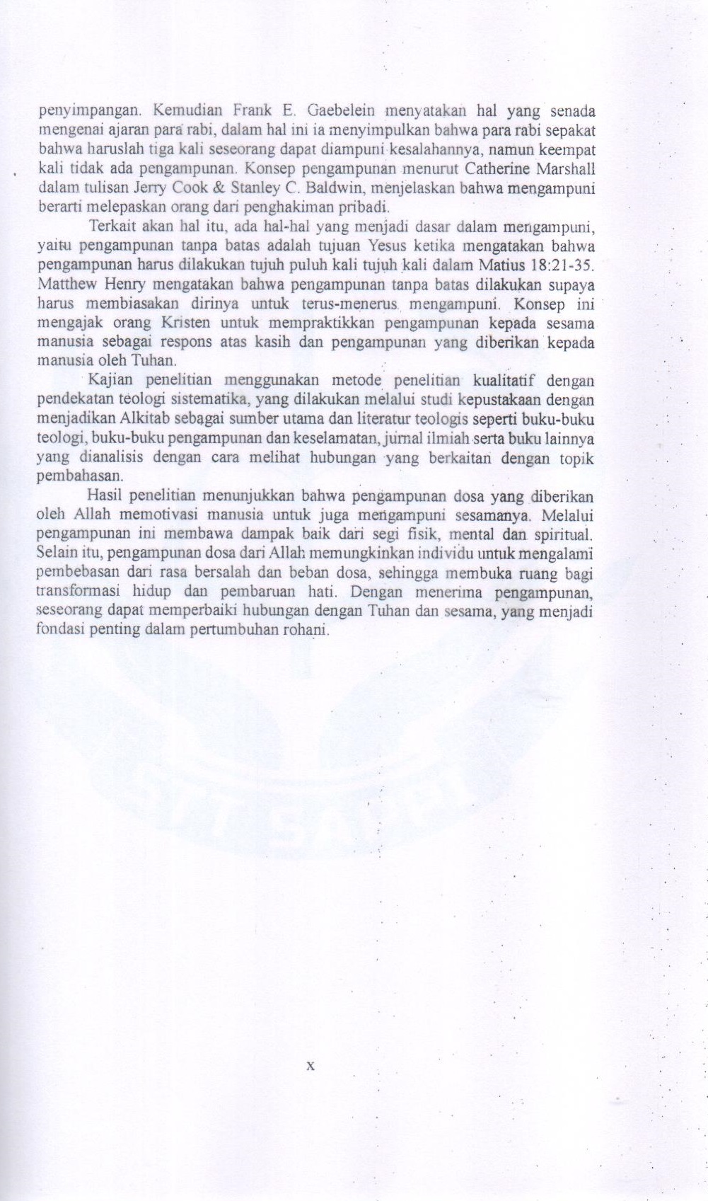 Aspek Pengampunan Dosa Dalam Doktrin Keslamatan dan Implikasinya Bagi Pertumbuhan Rohani